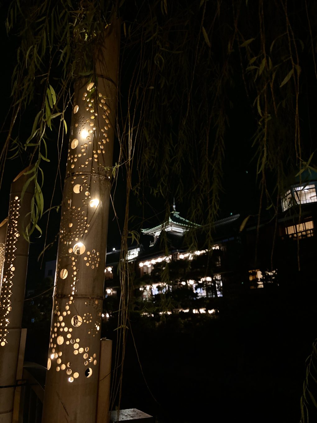 私が特にお勧めしたいのは、夜のライトアップされた東海館の外観!川沿いの竹あかりが灯ると、その美しさはまさに絶景。昼間の歴史的建築も素晴らしいですが、夜の幻想的な雰囲気は必見です!