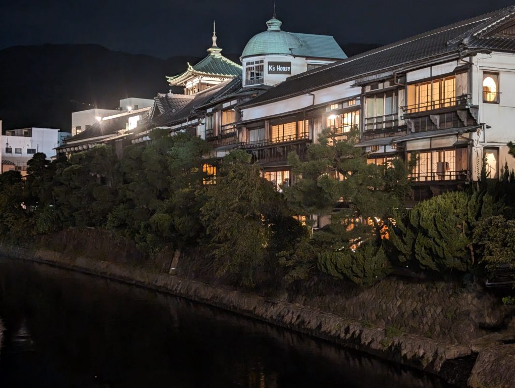 - “暗くなってから、建物の横を流れる川の対岸から見る東海館は、優しい光を放っていて、とてもきれいです。”