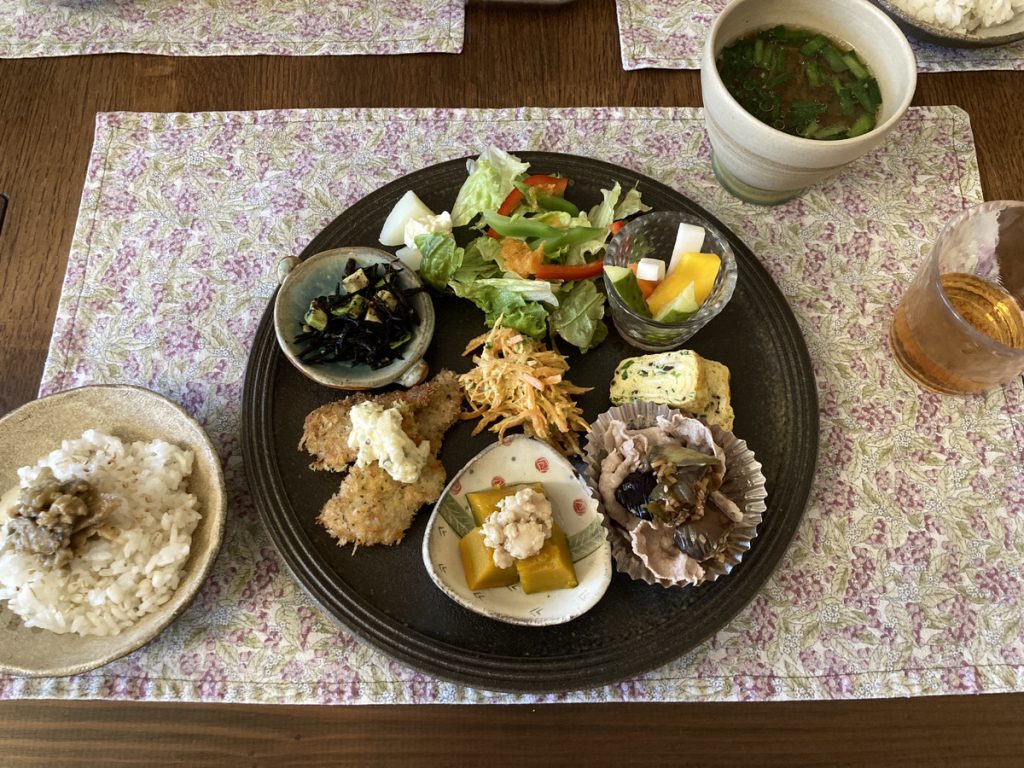 - 昼ごはん(おかず8品盛り合わせ+お汁+飲み物)